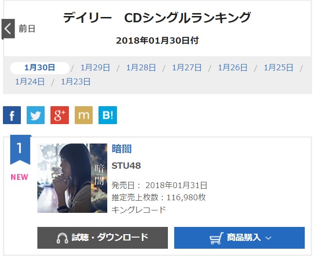 【朗報】STU48デビューシングル「暗闇」初日売上116,980枚!!!【STU/瀬戸内48】