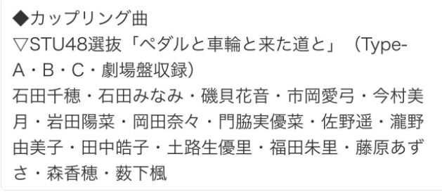 AKB4851stシングル「ジャーバージャ」カップリング曲STU48選抜「ペダルと車輪と来た道と」の選抜メンバーが発表される!!【瀬戸内48】