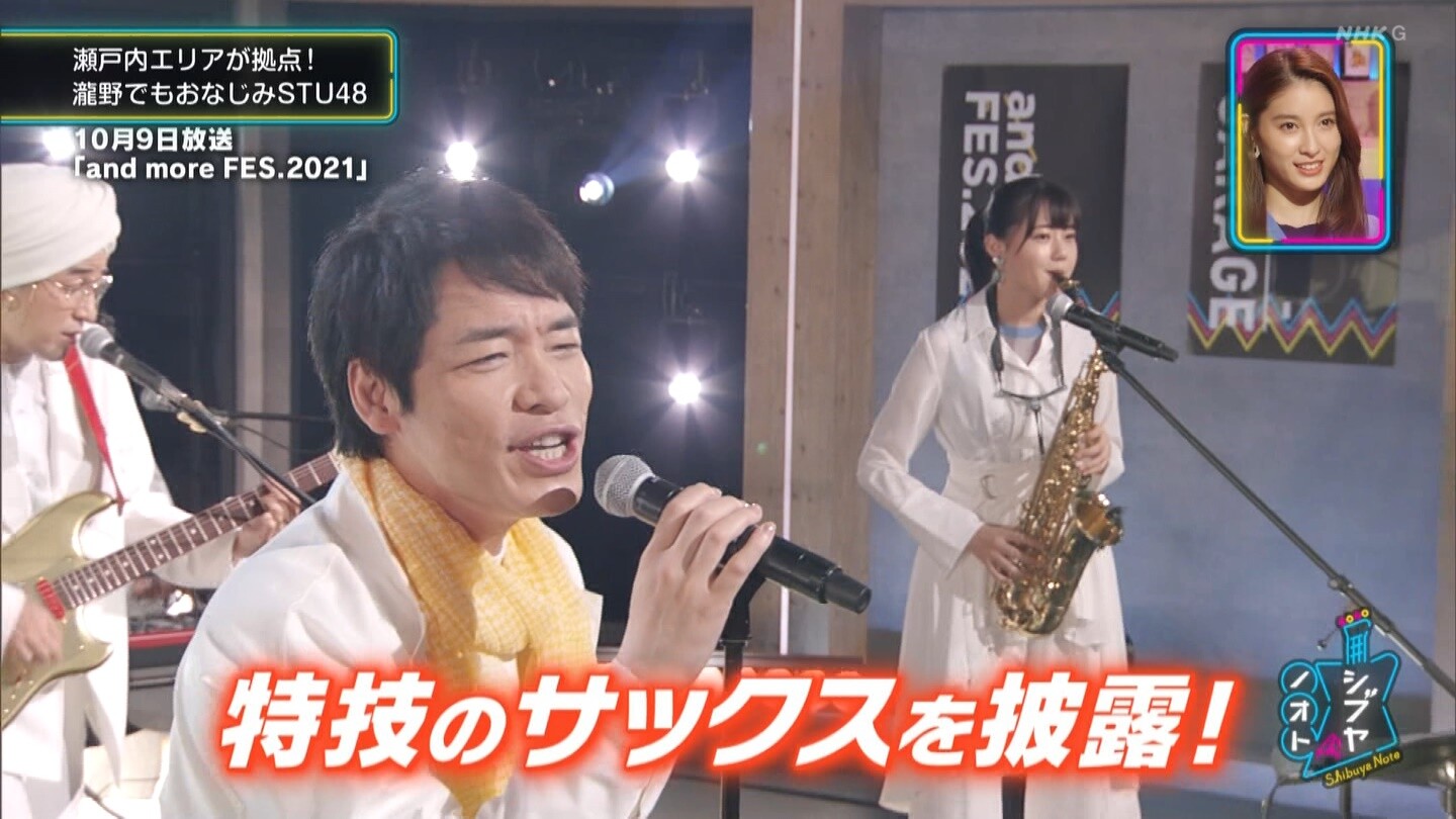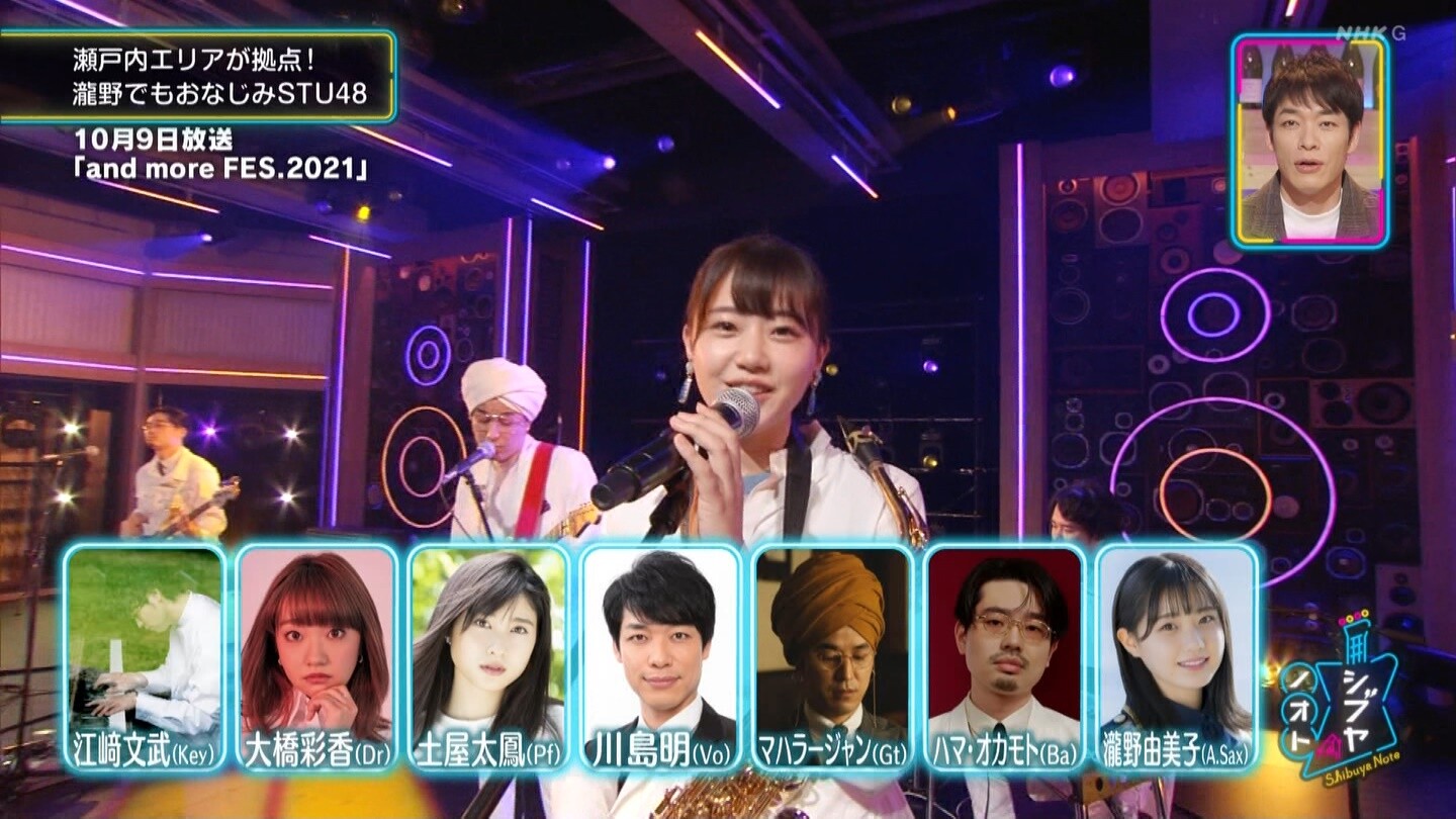 番組発バンドSHOCK&RUN YO!のメンバーとしてSAXを担当した瀧野由美子がいるSTU48は