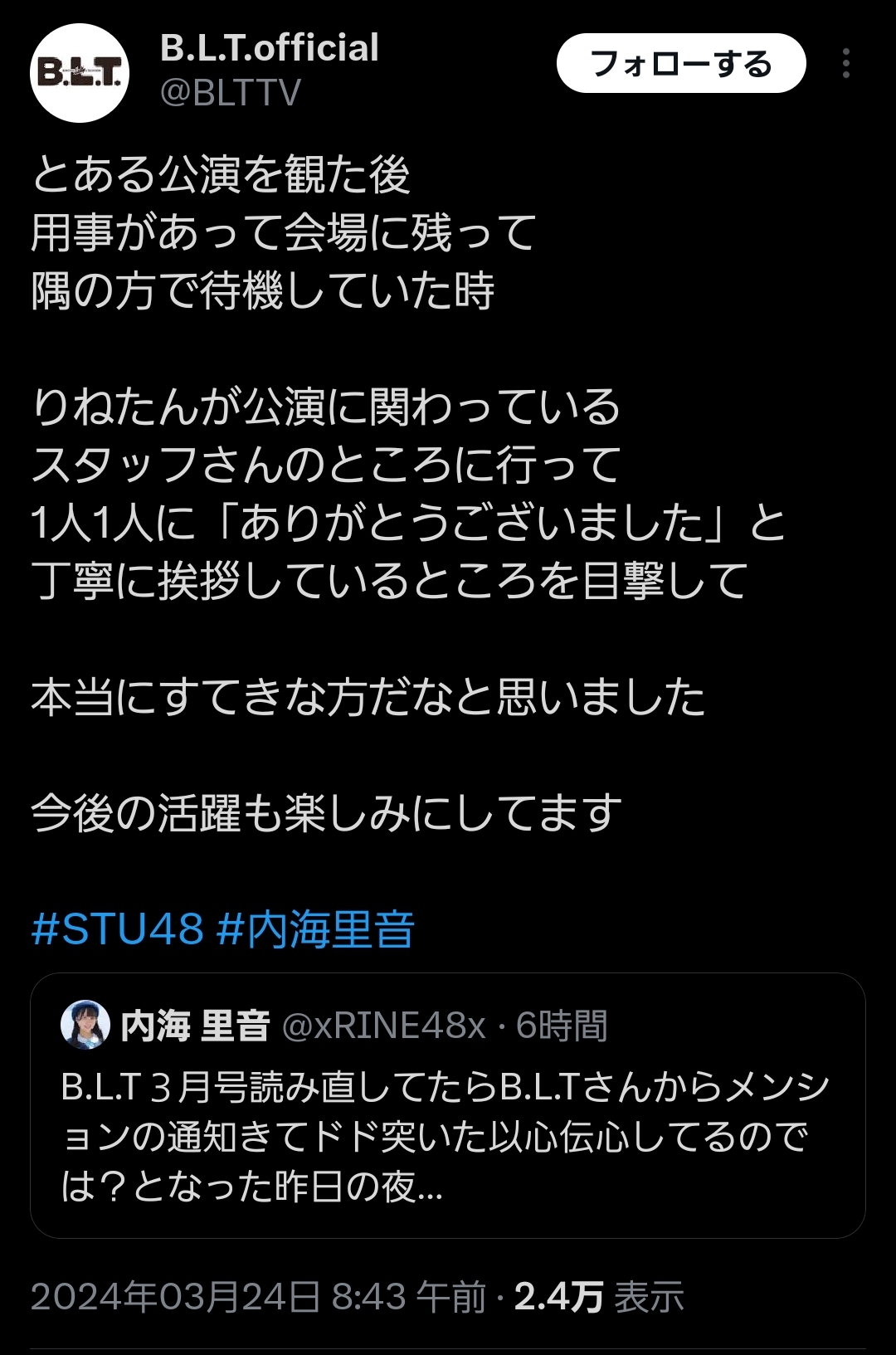 8: 47の素敵な 2024/03/24(日) 15:39:12.36